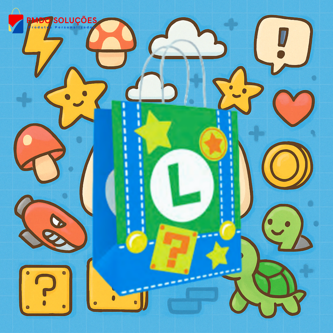 🎉 Sacola de Papel com Estampas de Games e Desenhos – Diversão garantida para todas as idades!